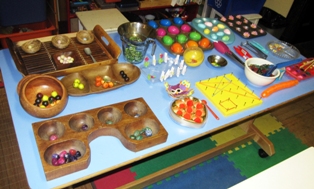 My background in education includes designing activities to encourage development of fine motor skills. Cindy and I decided to implement a Fine Motor Booster program for all of the children in the preschool but focused on those leaving for the school system in the Fall. The activities chosen were intended to target 4 categories of hand development: 1) the muscles of the fingers, 2) the web (area between thumb and index finger), 3) the wrist, and 4) bilateral coordination (both hands together). These activities were set out in the classroom for all children to practice daily for six weeks. Most of the children were very enthusiastic to work with the materials and practice their new found skills. The materials were changed weekly to ensure a continued interest from the children and to have them exercise all four categories of hand development.