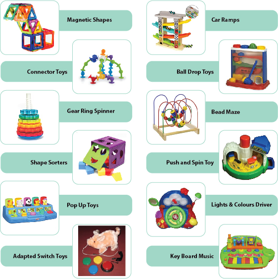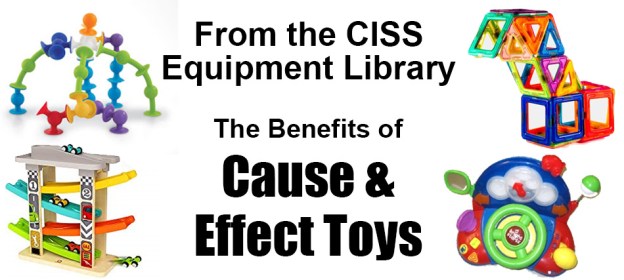 Cause and Effect toys are commonly used to support Infant and Toddler development. However, they are also used for preschool and older children with early and emerging play skills. These toys help children make the connection between cause and effect (doing one thing makes something else happen) and promotes curiosity. Cause and effect toys are a great concrete tool to build on a child’s engagement, joint attention, play skills, social and language skills and help increase the child’s ability to wait. These toys promote inclusion in the classroom by engaging the child in a functional activity.